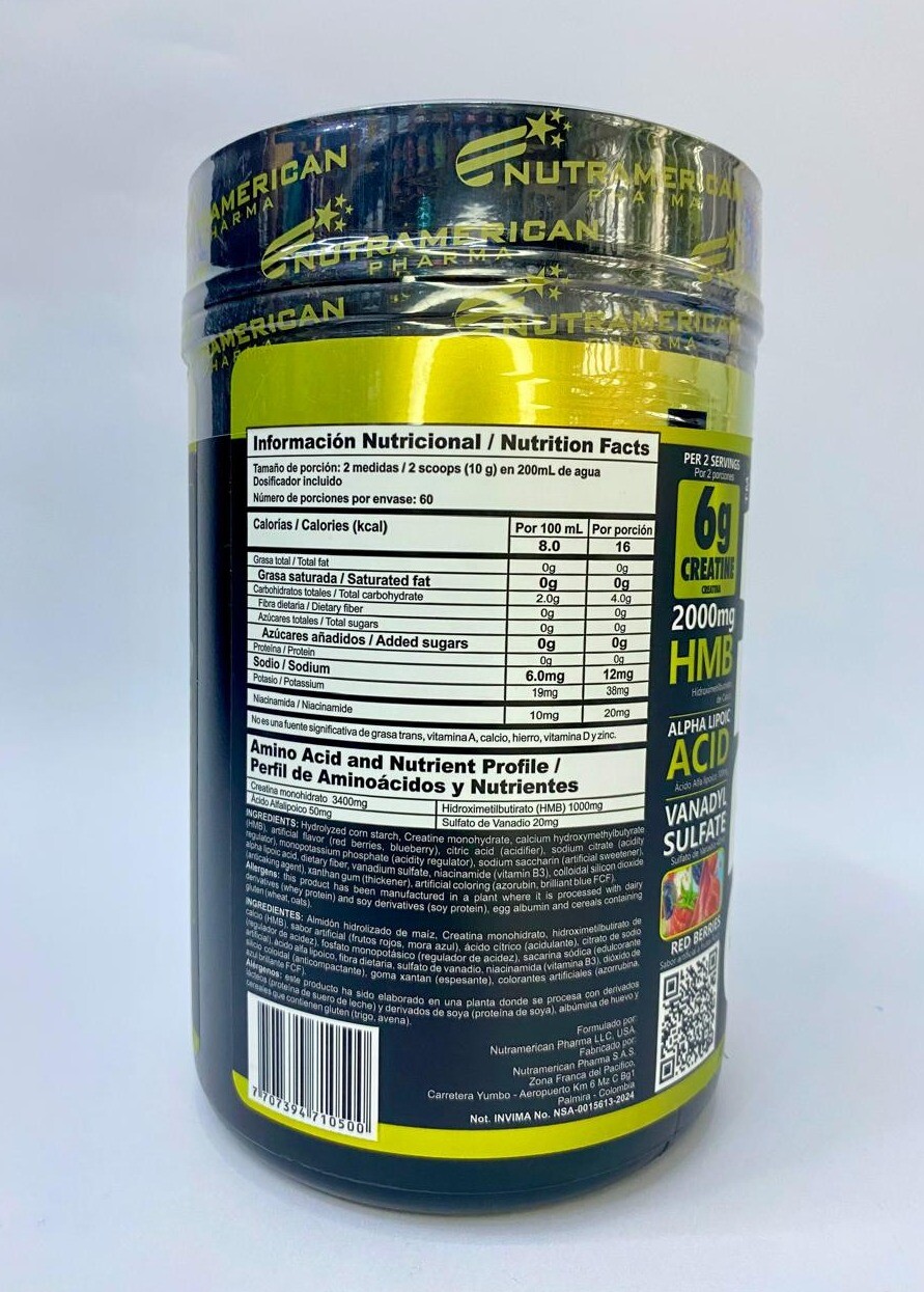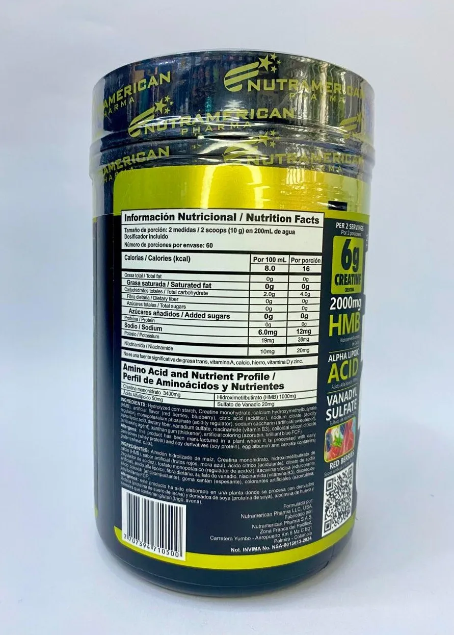 Alpha Lipoic Acid (Ácido Alfa Lipoico): Mejora la sensibilidad a la insulina, facilitando que la creatina entre directamente a la célula muscular.