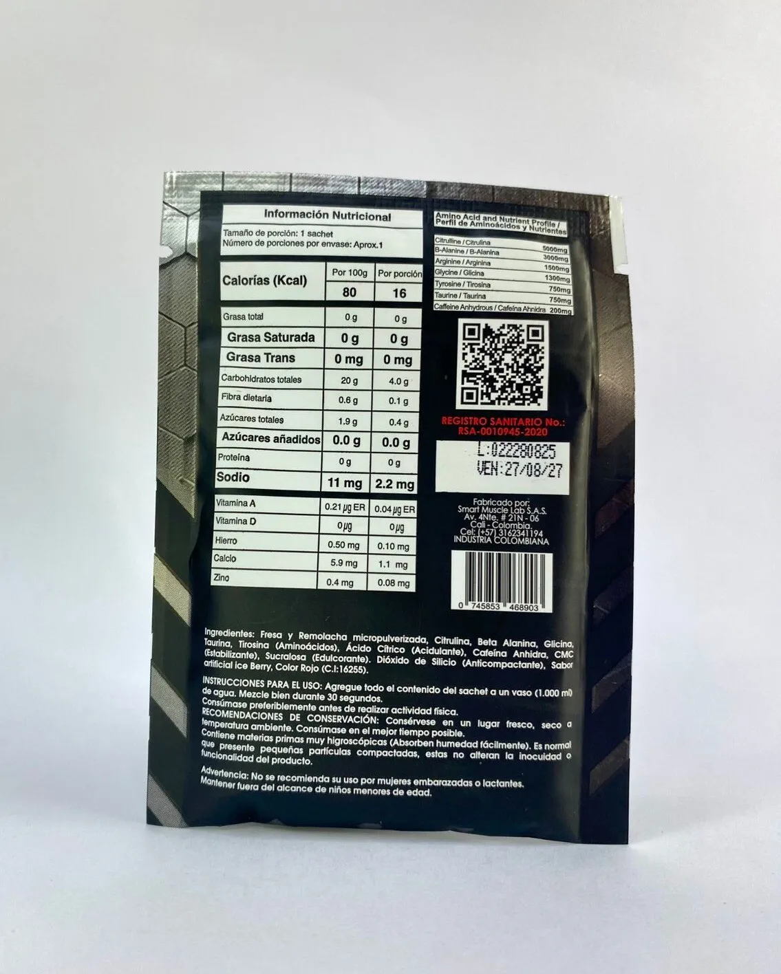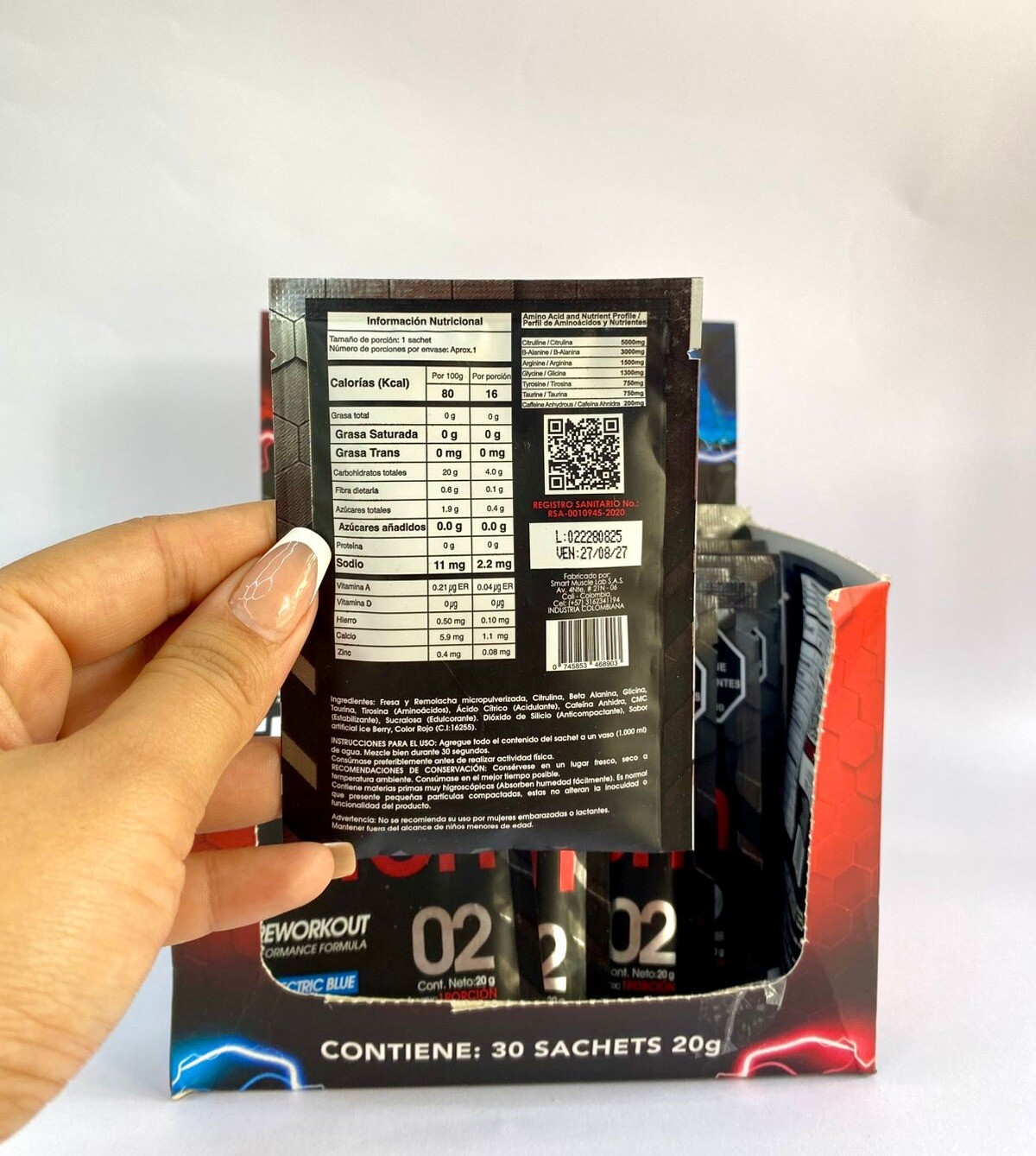 Dosis Exacta: Contiene 20g de polvo, la cantidad precisa para una porción que garantiza resultados óptimos en tu entrenamiento.
